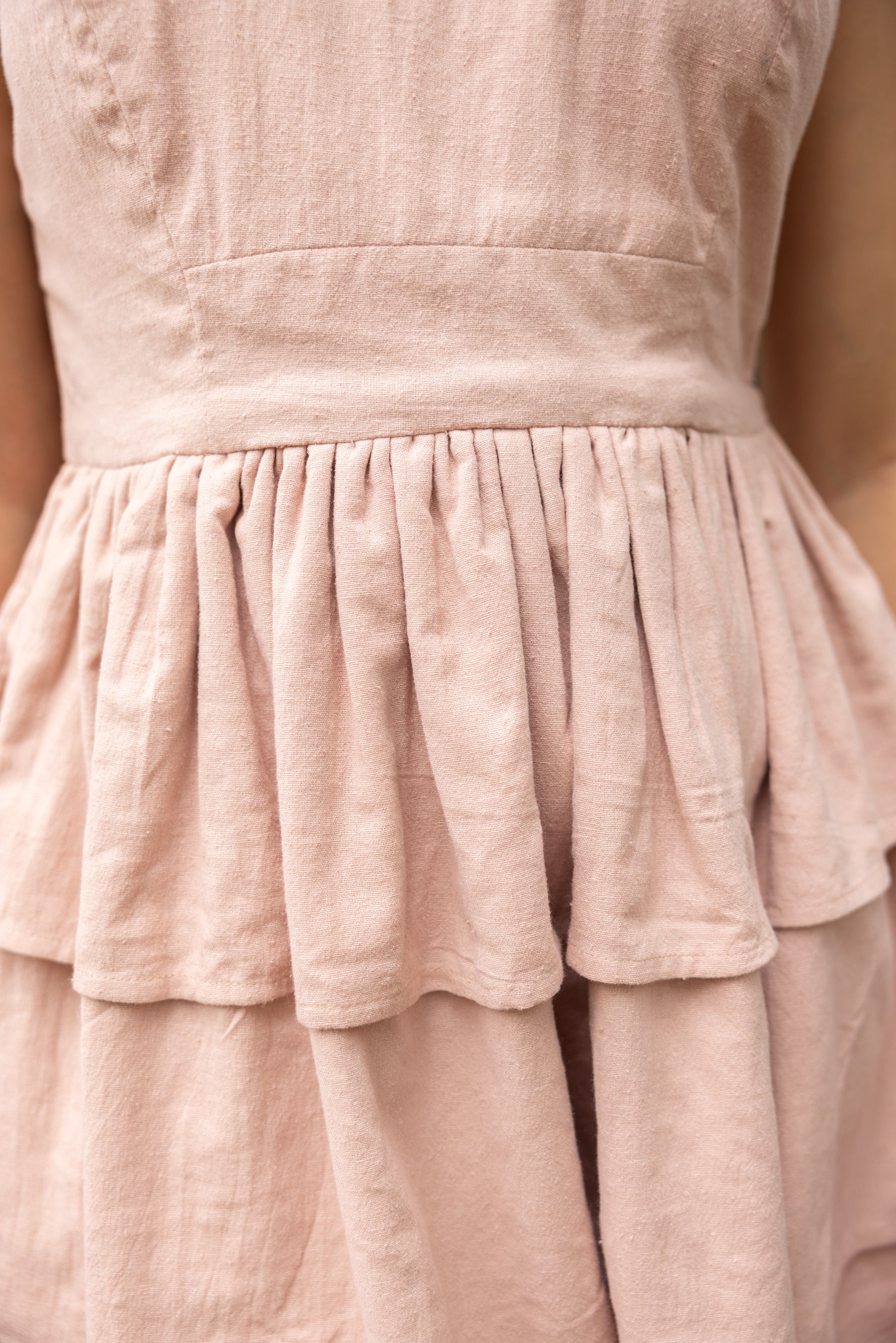 A comfortable fit Azo free Dyed, kala cotton fabric, sleeve less, three tier flared hem with one side pocket giving an elegant look and making it perfect for summer & monsoon season.